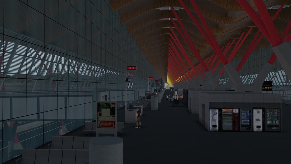 - Detailní letištní budovy, terminál 4 s vnitřním vybavením