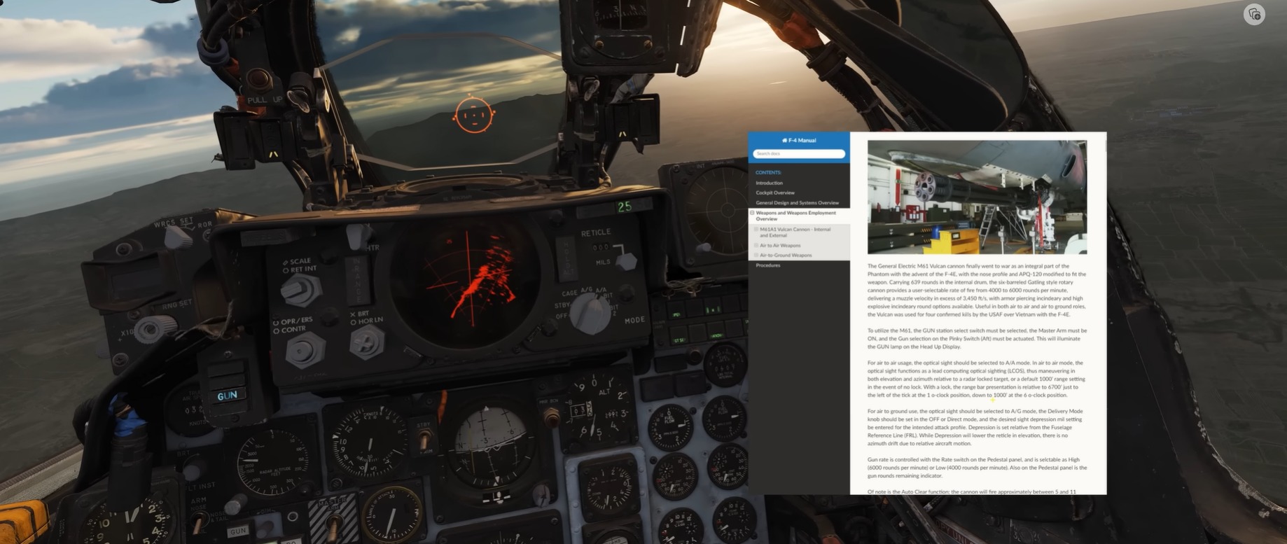 A konečně, DCS: F-4E přichází s podrobnou interaktivní příručkou. Heatblur poprvé zpřístupňuje tuto příručku přímo z modulu. Podržte kombinaci pravé klávesy a klikněte na libovolné tlačítko v kokpitu a dostanete se do segmentu příručky s podrobným popisem daného tlačítka. Pěkné! V plánu jsou také tréninkové mise a videa!