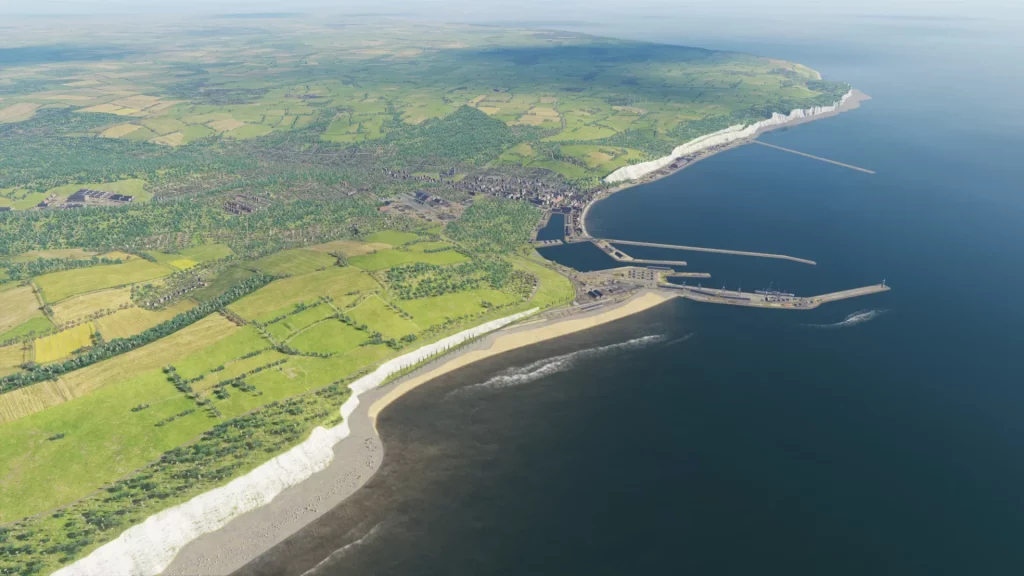 Společnost Urga Media původně vůbec nezahrnula Anglii do původního vydání mapy Normandie 1944, ale na základě zpětné vazby od komunity přidala základní terén podél severního okraje mapy a poskytla nám letecké základny, ze kterých můžeme v Anglii létat. Normandie 2 tuto zónu zcela přepracovává a dává nám všechny detaily, které byste očekávali podél pobřeží i mimo něj.