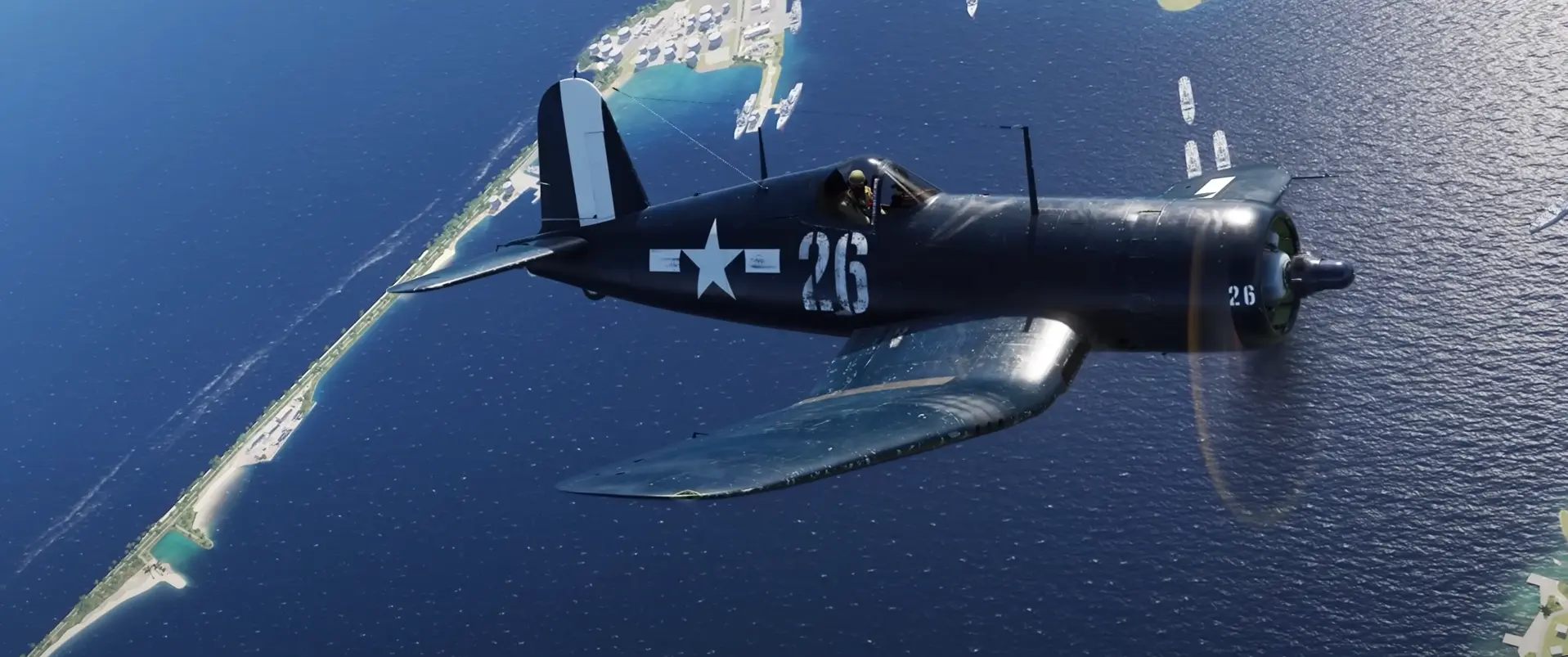 Další DCS: F4U Corsair s neznámou mapou v pozadí. Opět by to mohly být Mariany.