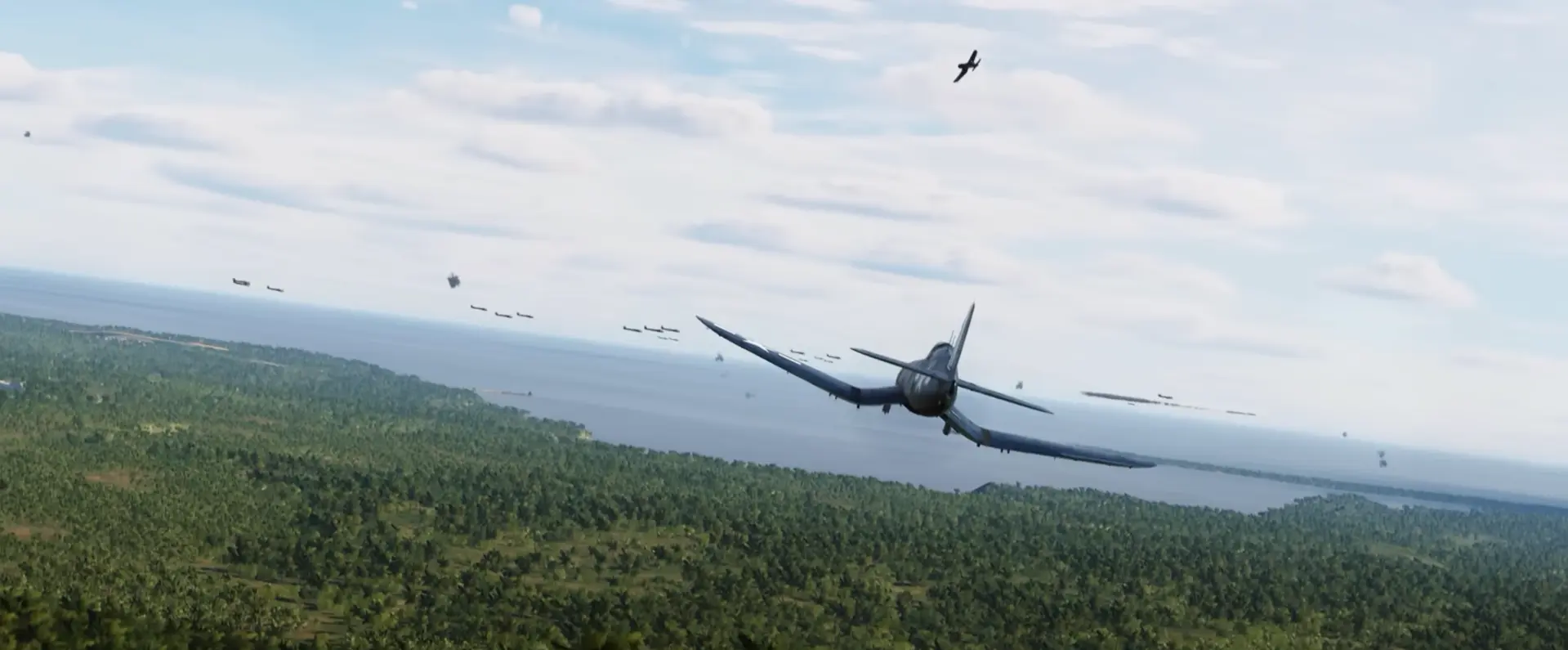 V posledních hodinách se o tomto snímku hodně mluvilo. F4U je v popředí, ale všichni chtějí vědět o potenciálních aktivech, které zahrnují japonské letouny. Ale zde zřejmě budou použity německé letouny, jak již bylo vidět v dřívějších videích a záběrech.