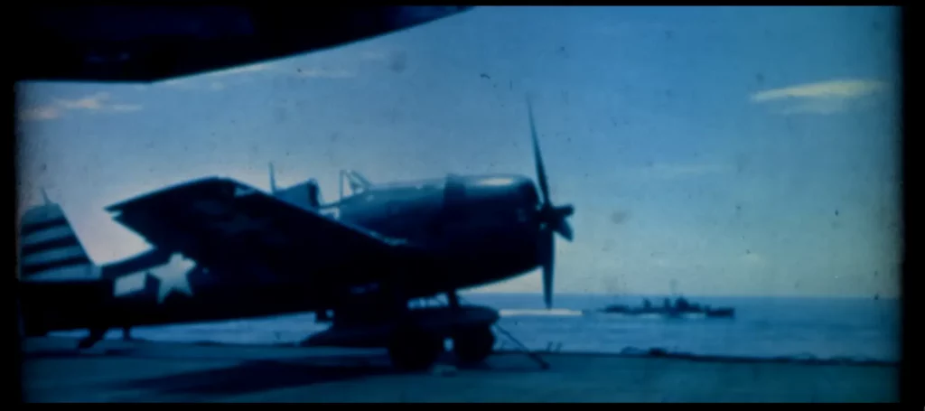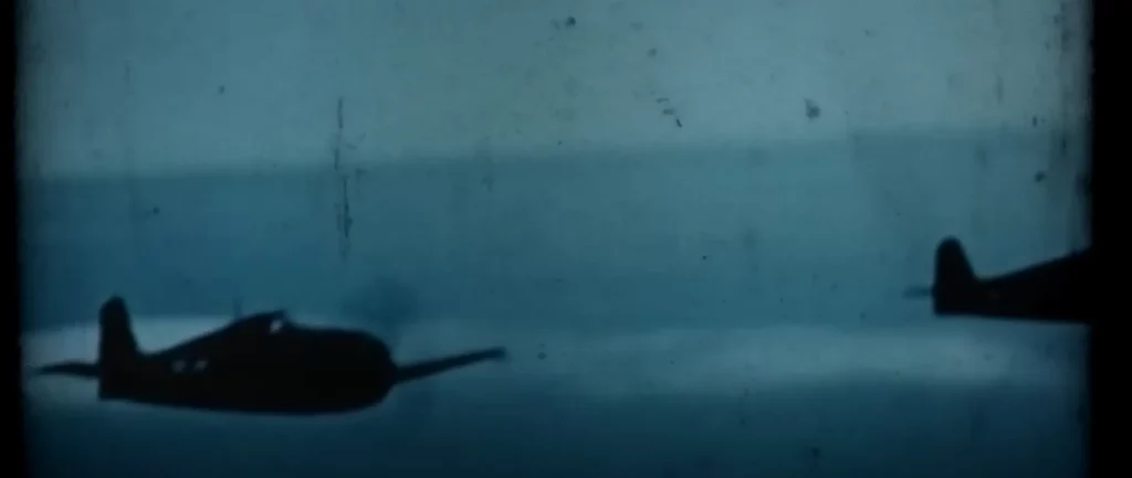 A to není všechno, protože video opět problikne a objeví se několik zrnitých záběrů dalšího klasického letadla. Tentokrát je to F6F Hellcat!