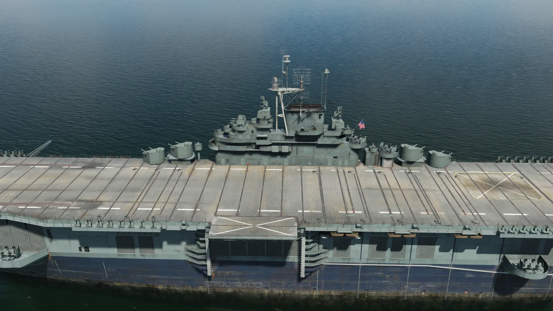 Paluba a ostrov(velitelská věž, navigační můstek, řízení letového provozu ...) byly prioritou číslo jedna, pokud jde o model a textury. Při vydání bude přítomen model poškození a funkční dveře hangáru a výtahy. K dispozici bude také hangárová hala, ze které bude možné startovat nebo v ní zaparkovat po dlouhé misi.