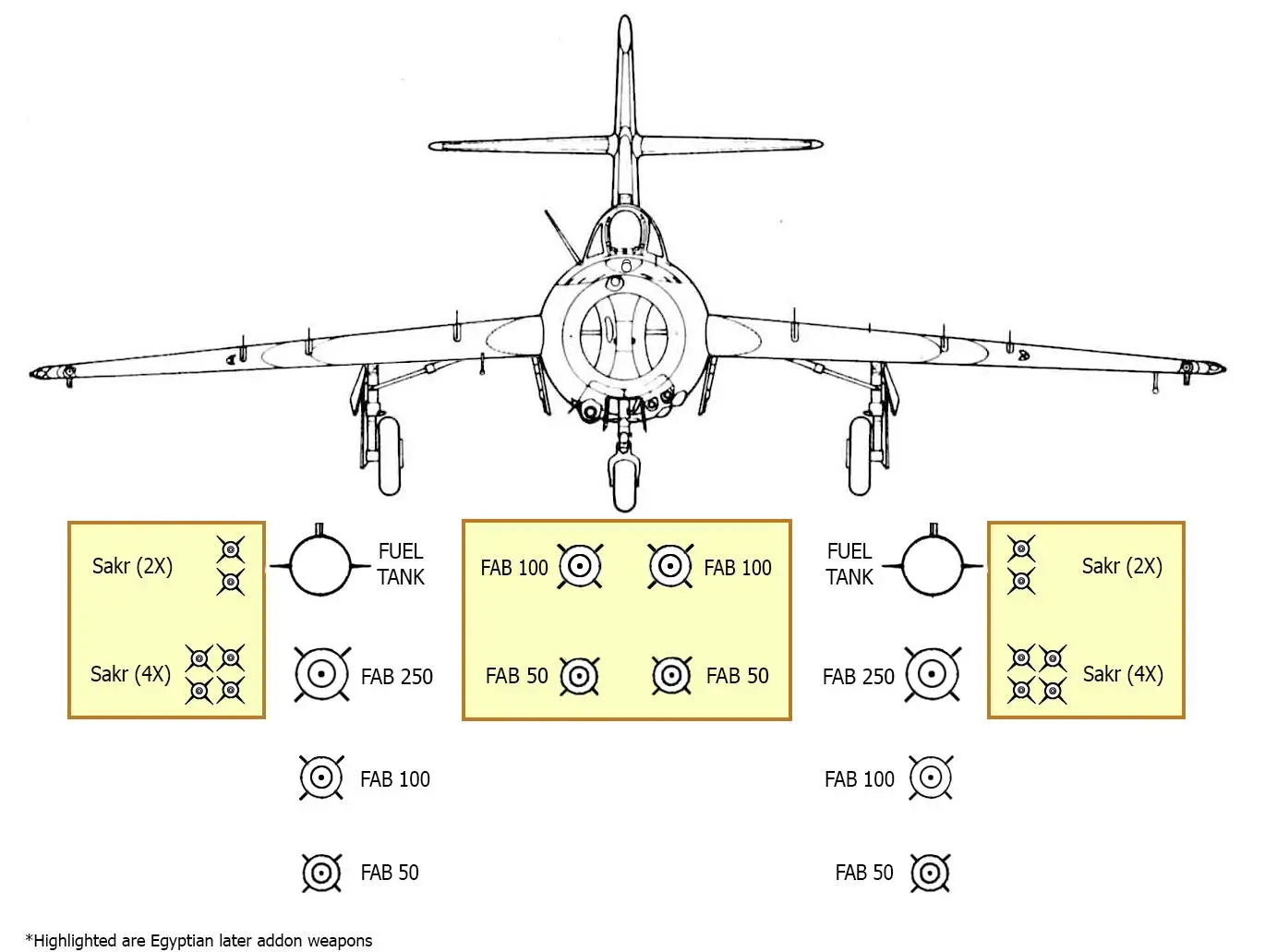 Od společnosti Red Star Simulations jsme dostali skvělou aktualizaci stavu projektu MiG-17 pro DCS World s několika podrobnostmi. Potvrzuje se, že typ, který tým staví, je MiG-17F. Kvůli nedostatku údajů se tým v současné době nezabývá verzí MiG-17AS, která měla schopnost nést střely vzduch-vzduch K-13. MiG-17F, který staví, bude naopak obsahovat egyptský zbraňový balíček, který zahrnuje 76mm rakety "Sakr" a také přídavné trupové pylony pro pumy. Konfigurace výzbroje jsou uvedeny v grafice zveřejněné na jejich stránce na Facebooku.