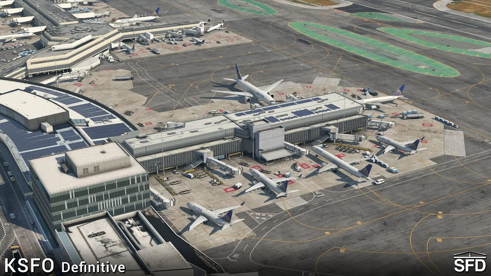 Toto ztvárnění má rozsáhlý seznam novinek a funkcí. Počínaje použitím SAM pro nástupní můstky a pro letištní operace bylo použito k dodání realismu a života na letišti. Dodané uspořádání letiště je aktuální uspořádání KSFO z roku 2022. Zahrnuty byly také různé animace letištních vozidel, pracovníků a cestujících. Použití textur PBR je přítomno v celém balíčku scenérie. Kompletní seznam funkcí si můžete prohlédnout v obchodě X-Plane.Org.